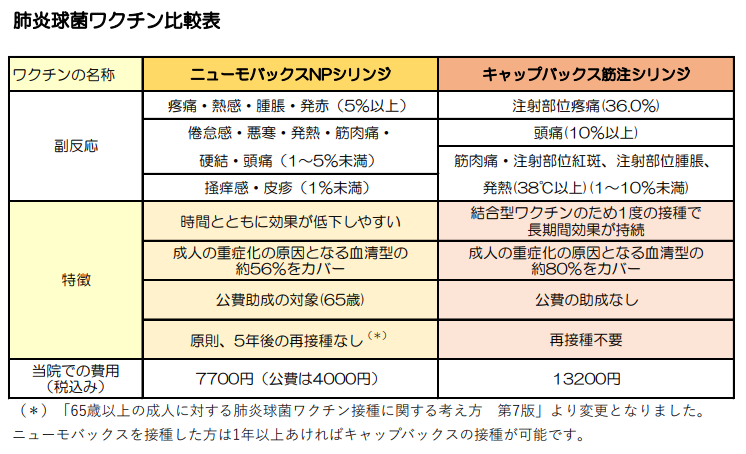 2026年1月8日 / 最終更新日 : 2026年1月8日 nishimuko-cl 一覧 【肺炎球菌ワクチンのご案内について】 65歳の方などを対象に、『肺炎球菌ワクチン』の定期接種を実施しています。 画像をクリックすると拡大できます。 肺炎球菌感染症の予防(ワクチン) 肺炎球菌感染症を予防するワクチンは数種類あります。効果や接種対象、費用に違いがあります。 画像をクリックすると拡大できます。